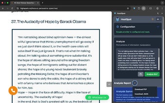 HootSpot to przydatne narzędzie edukacyjne, które umożliwia użytkownikom analizowanie tekstów pod kątem psychologicznych i retorycznych wzorców. Działa jako dodatek w przeglądarce Chrome, wykorzystując moc API Google Gemini lub lokalnych modeli językowych za pośrednictwem LM Studio i Ollama. Dzięki temu użytkownicy mogą zidentyfikować techniki manipulacji w dowolnym tekście, co jest szczególnie cenne w kontekście politycznym czy reklamowym.
